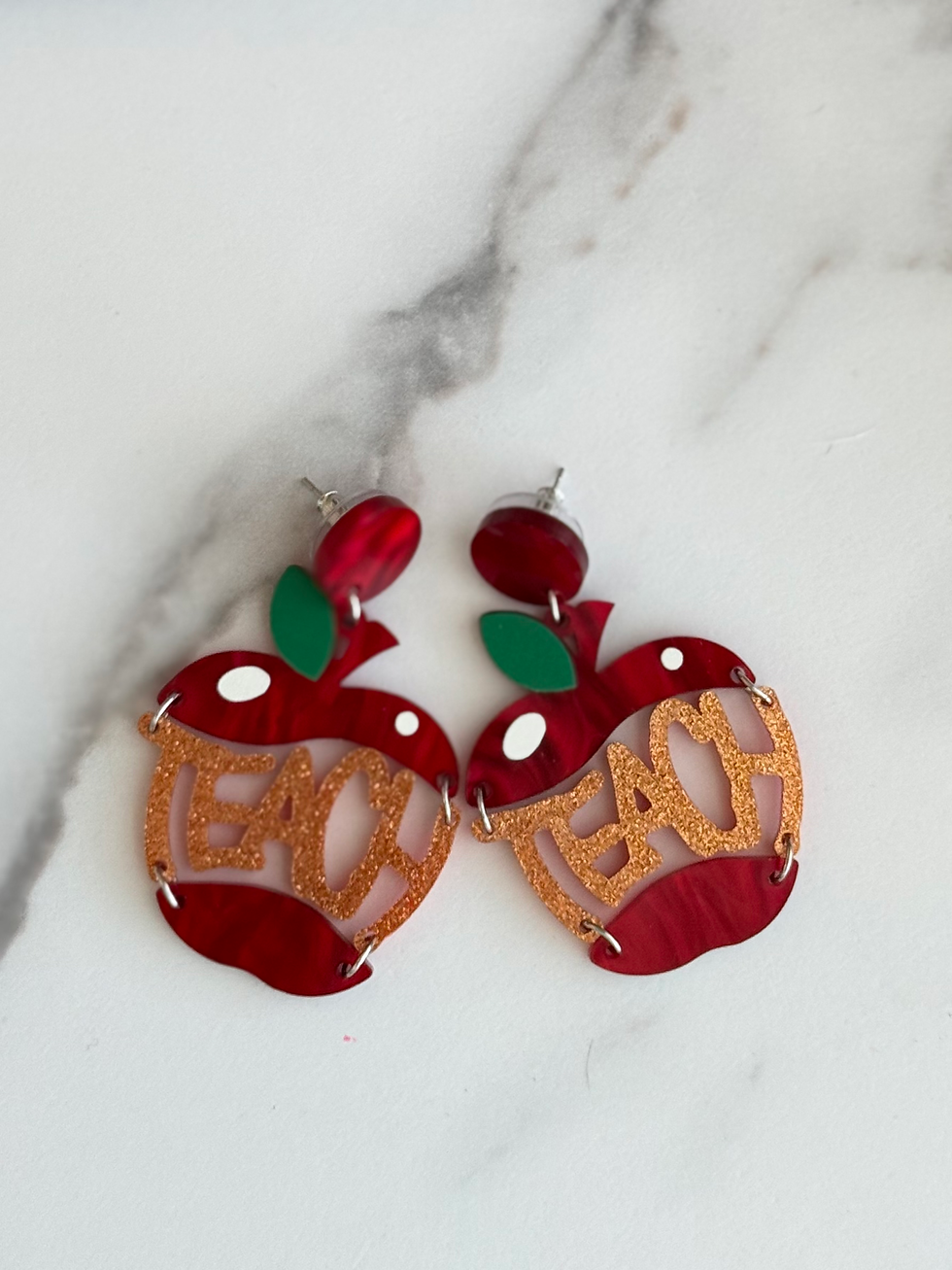 Love Letter Dangle Earrings, Red Glitter Hearts, White Envelope Design, Valentin